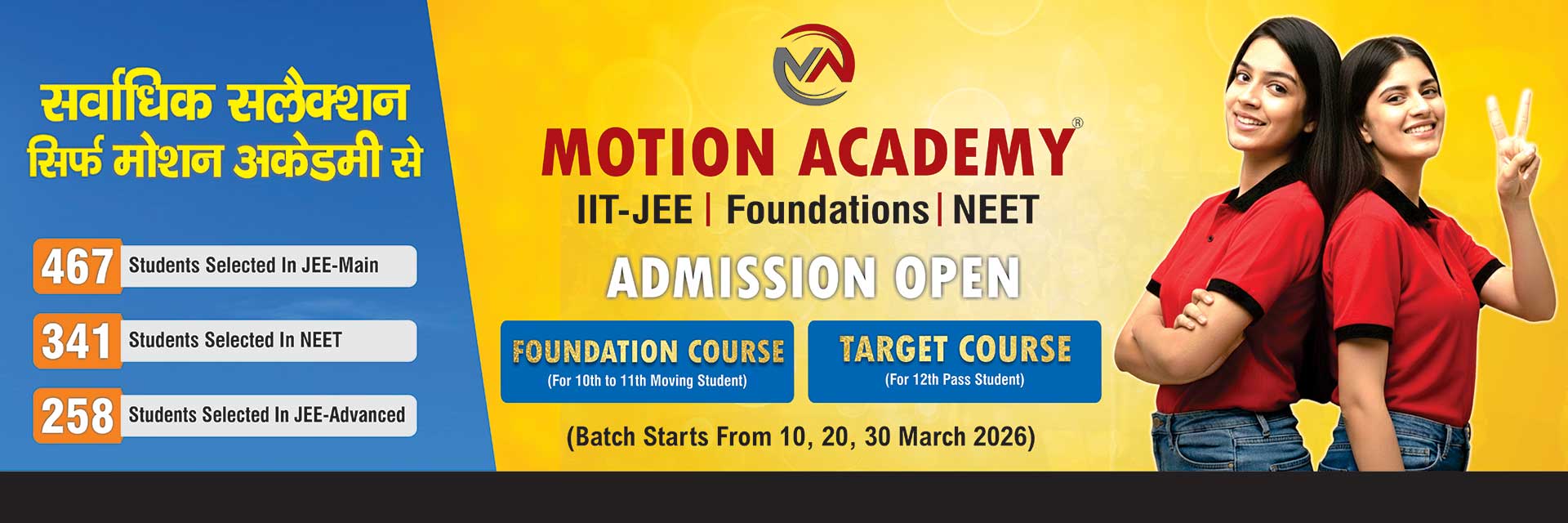 Promoting & supporting talent is core value of Motion Academy. For this, we provide scholarships to meritorious students in form of concession in course fee while they are studying at Motion Academy and cash award & scholarship for achieving success and pursuing engineering & medical studies once they qualify the examination.